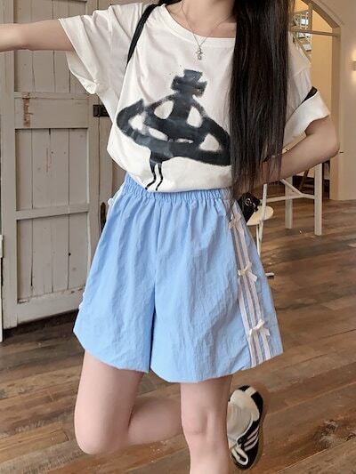 2024 春夏パンツ ショート丈 ワイド ウエストゴム ハイウエスト 美脚効果 脚長効果 細見え 短パン 黒白 おしゃれ かわいい 韓国ファッション系 レディース サイドお出かけ