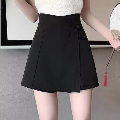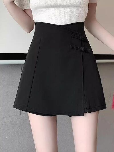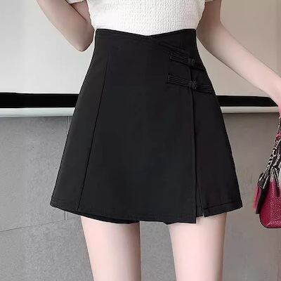 脚見せショートパンツ バックルスーツ スカート パンツ レディース 夏 スリット Aライン ワイドレッグ ショーツ 着痩せ 通勤 韓国ファッション