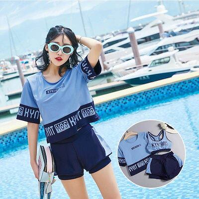 水着中学生レディースショートパンツ3点セット韓国Tシャツビキニ可愛いスポーティー小胸にもぴったりおしゃれ体型カバー 水着セット大きいサイズラッシュガードママプール女の子