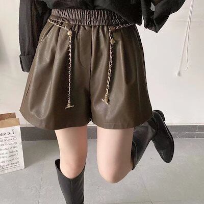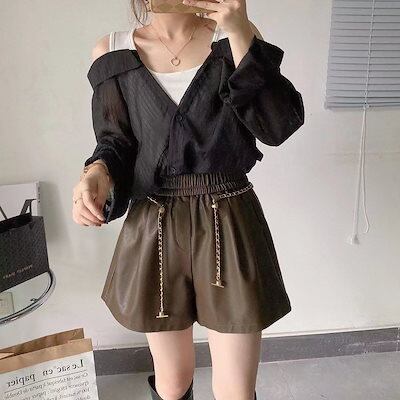脚見せショートパンツ デニムパンツ ショーツ ラシャ 春秋 レディース服 ハーフパンツ ハイウェスト着痩せ ワイドパンツ Aライン パンツ カジュアル 韓国ファッション