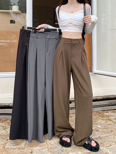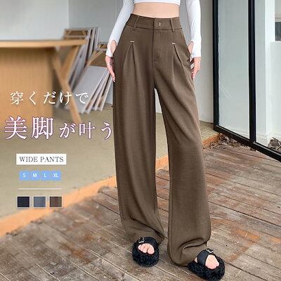 タックワイドパンツ レディース ワイドパンツ タックパンツ ロングパンツ バギー パンツ ズボン ボトムス 通勤 ゆったり 体型カバー カジュアル 仕事 オフィス OL 楽ちん ファッション オシャレ
