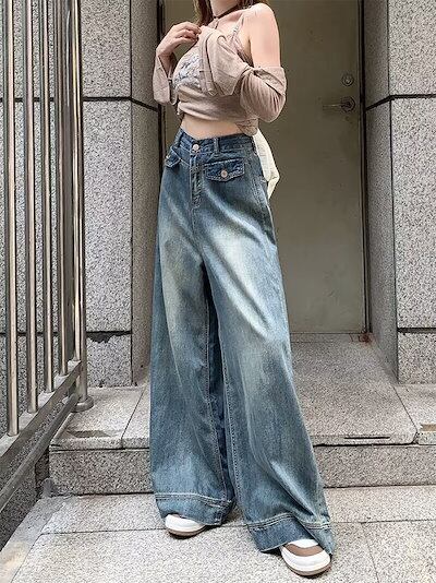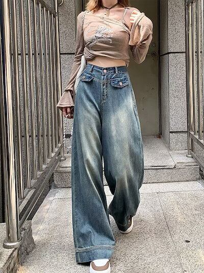 デニムワイドパンツ レディース ワイドパンツ デニムパンツ フレアパンツ ジーンズ ジーパン ロングパンツ 大きいサイズ ゆったり ハイウエスト バギーパンツ ボトムス ロング丈 ズボン カジュアル