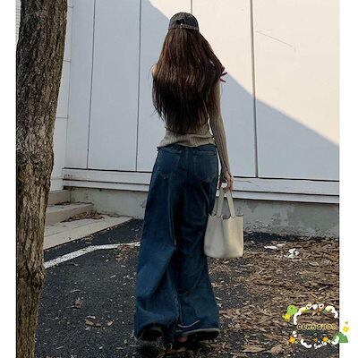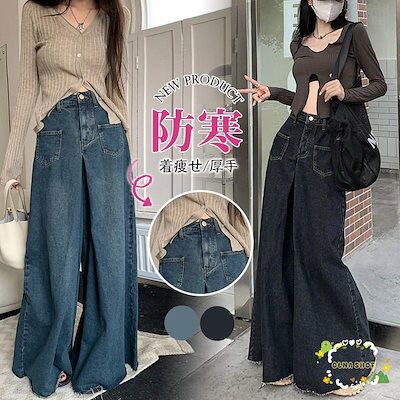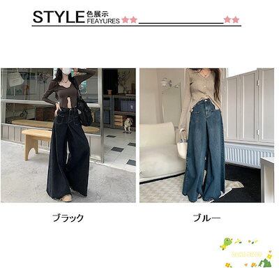 【Primepic】大きいサイズ レディース デニム ワイドパンツ サイドタック ウエストゴム バギーパンツ フレア パンツ ジーンズ ジーパン ボトムス