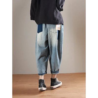 Gパン レディース サルエルパンツ デニムパンツ ワイドパンツ バギーパンツ ウエストゴム ゆったり