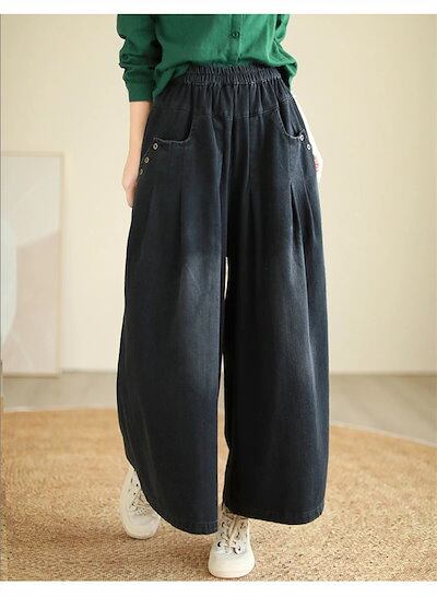 デニム ワイドパンツ デニムパンツ レディース ガウチョパンツ ジーンズ ゆったり ボトムス ジーパン 大きいサイズ バギーパンツ イージー 柔らか デニム 森ガール ズボン ウエストゴム 体型カバー
