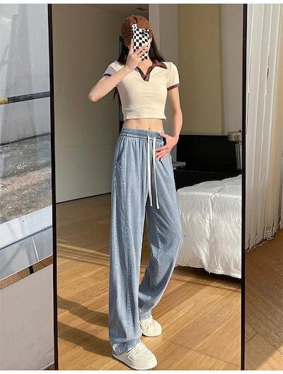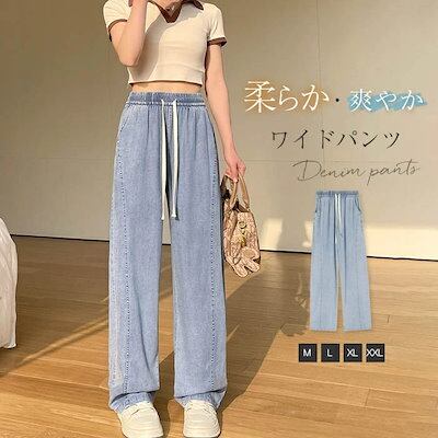 ワイドパンツ 涼 パンツ レディース ワイドパンツ 春夏 ジーンズ ボトムス 冷感素材 リラックス ウエストゴム ジーパン 薄手 長ズボン バギーパンツ イージーパンツ 涼しい 爽やか ロングパンツ