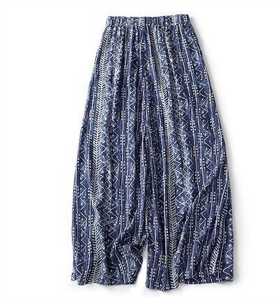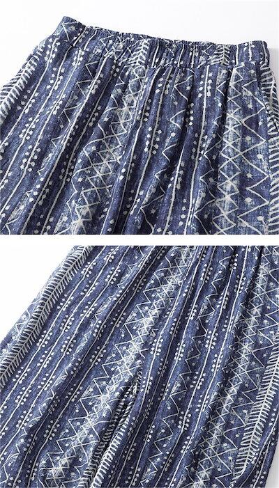 リネン コットン ワイドパンツ レディース バギーパンツ ストライプ 総柄 イージーパンツ フレアパンツ ロングパンツ ゆったり リゾート リラックス ビーチ 海 森ガール エスニック ふんわり 夏