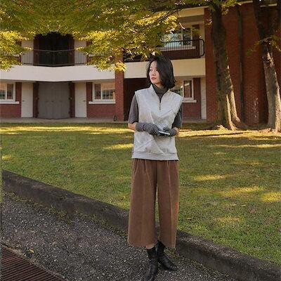 ワイドパンツ レディースコーデュロイ バギーパンツ シンプル ボトムス ストレート ポケット付き ゴム付き 七分丈 履きやすい ゆったり リラックス