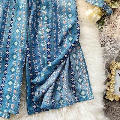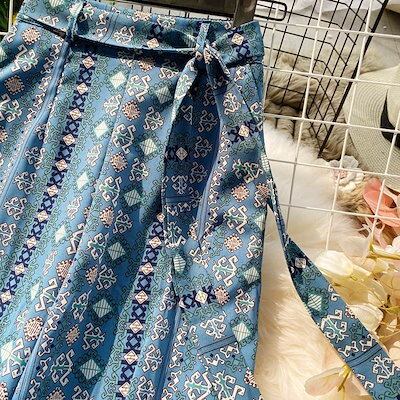 ワイドパンツ バギーパンツ ロング丈 ゆったり エスニック アジアン 柄 青 春 夏 ラフ ビーチ 海 プール レトロ ワイドパンツ リゾート コーデ リット 春 夏 レディース ブルー カッコイイ
