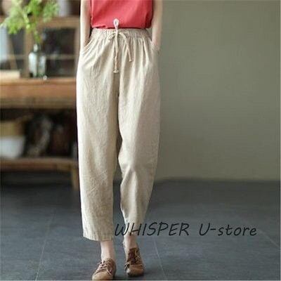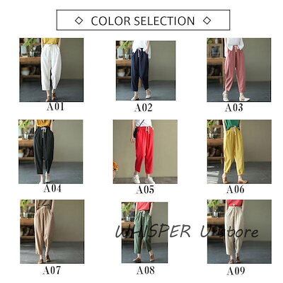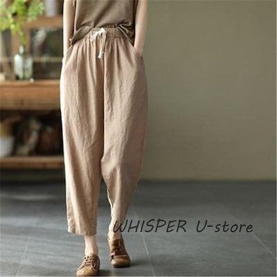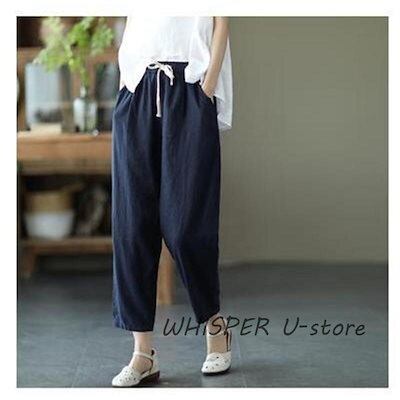 ガウチョパンツ レディース リネン ウエストゴム ボトムス 綿 麻 無地 ゆったり バギーパンツ パンツ 体型カバー テーパードパンツ シンプル
