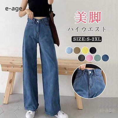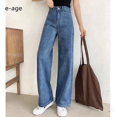 ヒット商品 ワイドデニムパンツ ジーンズ バギーパンツ デニムパンツ ハイウエスト ストレート ワイド ロング丈 ゆったり レディース