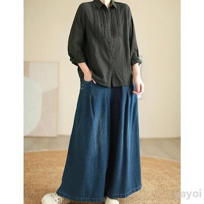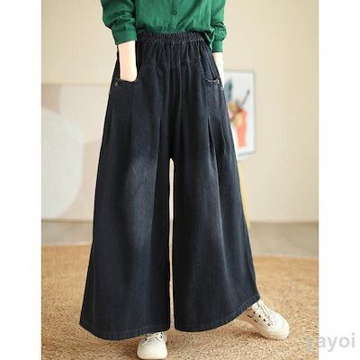 デニム ワイドパンツ レディース ガウチョパンツ デニムパンツ ゆったり ボトムス ジーパン ジーンズ バギー イージーパンツ
