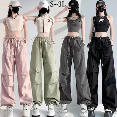 チノパンツ ワイドパンツ ワイド レディース チノパン カーゴパンツ バギーパンツ パンツ ロングパンツ ウエストゴム ズボン 長ズボン ボトムス 大きサイズ 着痩せ 楽ちん 春 夏 S M L 2