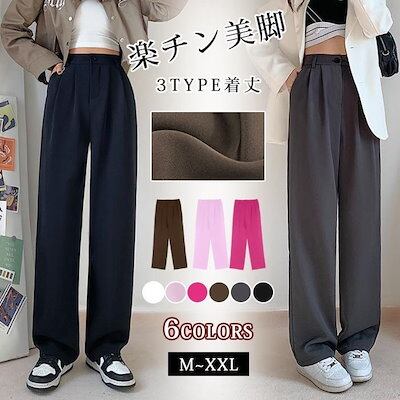 迅速な配達 ワイドパンツ レディース 3TYPE着丈 美脚 セミワイドパンツ ボトムス バギーパンツ ハイウエスト 韓国ファッション