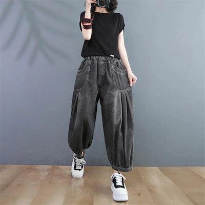 レディースパンツデニムバルーンパンツレディースパンツデニムサーカスパンツ大きいサイズあったかバギーパンツデニムパンツバルーンウエ
