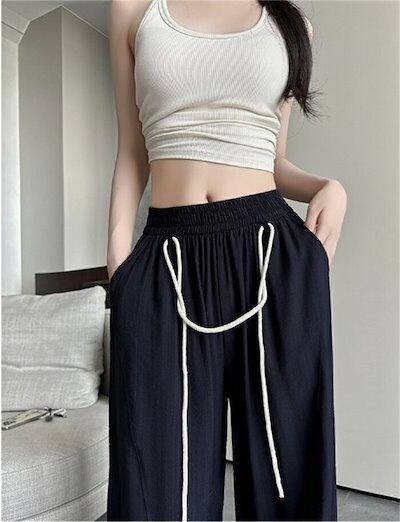 ワイドパンツ ガウチョパンツ パンツ レディース 夏 バギーパンツ 涼感 ウエストゴム ハイウェストフレアパンツ ウエストリボン ロングパンツ ゆったり 美脚 薄手 ゴム ロング丈パンツ ひんやり 細