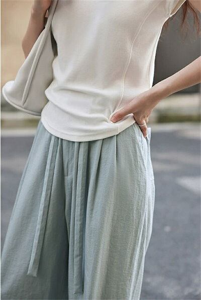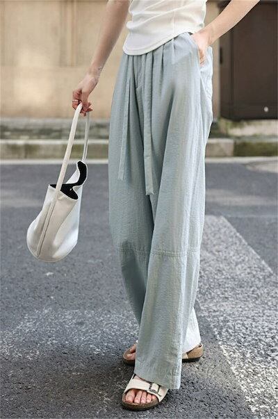 ワイドパンツ ガウチョパンツ パンツ レディース 夏 バギーパンツ 涼感 ウエストゴム ハイウェスト ストレートパンツ ウエストリボン 春 ロングパンツ 美脚 薄手 ゴム ロング丈パンツ ひんやり 細