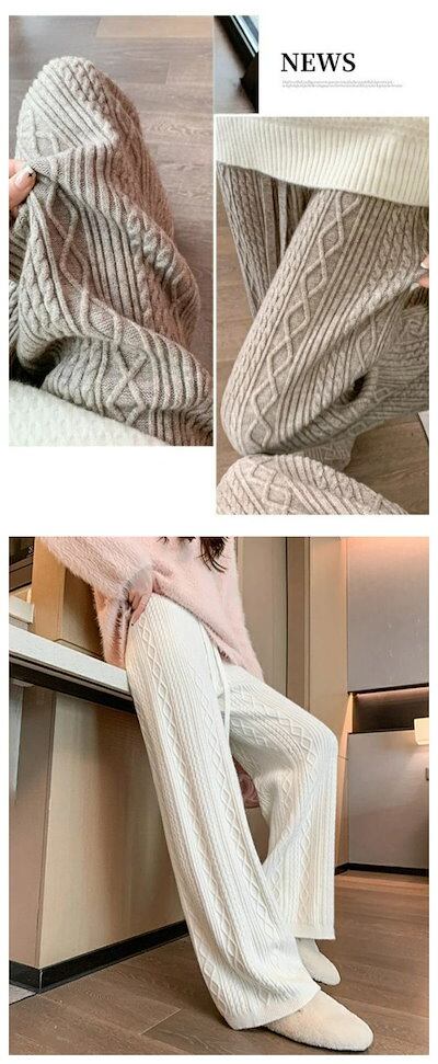 ニットパンツ 秋冬 ワイドパンツ レディース ロングパンツ ケーブルニット ウエストゴム 美脚 リラックス 暖い カジュアル ボトムス ケーブル編み ニットパンツ バギーパンツ イージーパンツ ゆった