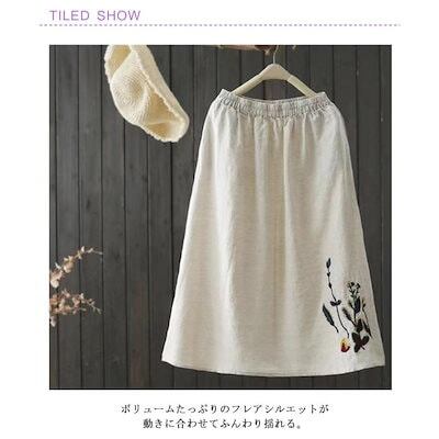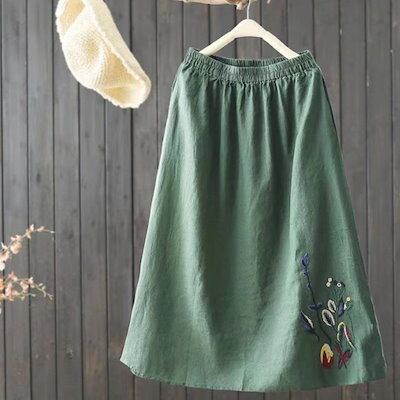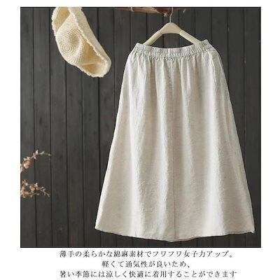 在庫に限りがあるので,先に買っておく スカート レディース 涼しい スカート マキシスカート 無地 綿麻混 フレアスカート ゴムウエスト 春夏 リネンスカート シンプル 通気性 着痩せ 綿 2枚購入で