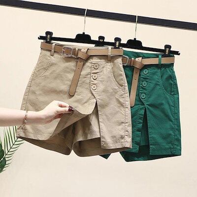 在庫に限りがあるので,先に買っておく ラップスカート風 パンツ ショートパンツ レディース 春夏 短パン おしゃれ 美脚 ベルト付き カジュアル 着せ 脚長効果 無地 シンプル 大きいサ 2枚購入で