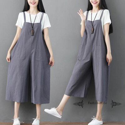 在庫に限りがあるので,先に買っておく サロペット リネン レディース サロペットワイドパンツ パンツ 薄手 オーバーオール 夏 ゆったりボトムス オールインワン 大きいサイズ 大きサイズ 2枚購入で1