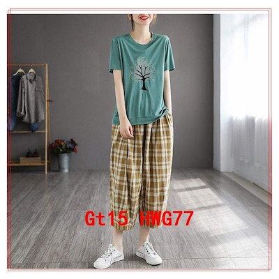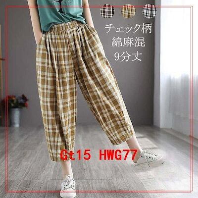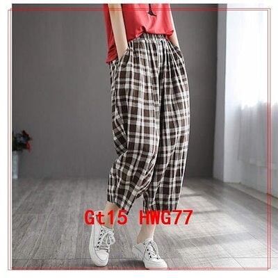 在庫に限りがあるので,先に買っておく 夏パンツボトムスレディース綿麻パンツリネン夏物夏バルーンパンツウエストゴムチェック柄ゆったりポケット付き涼しい薄手カジュアル 2枚購入で150円OFF