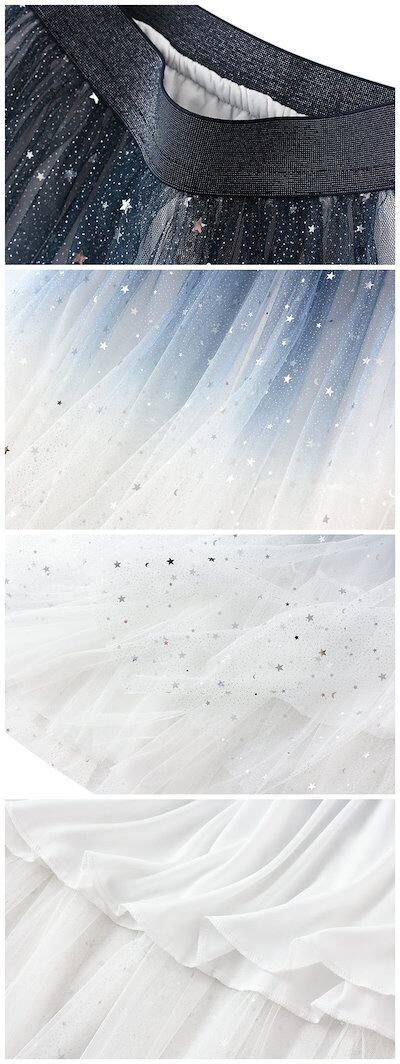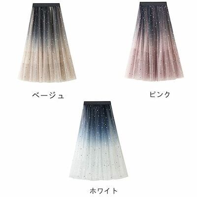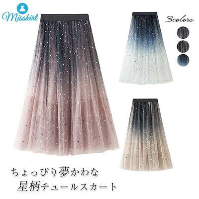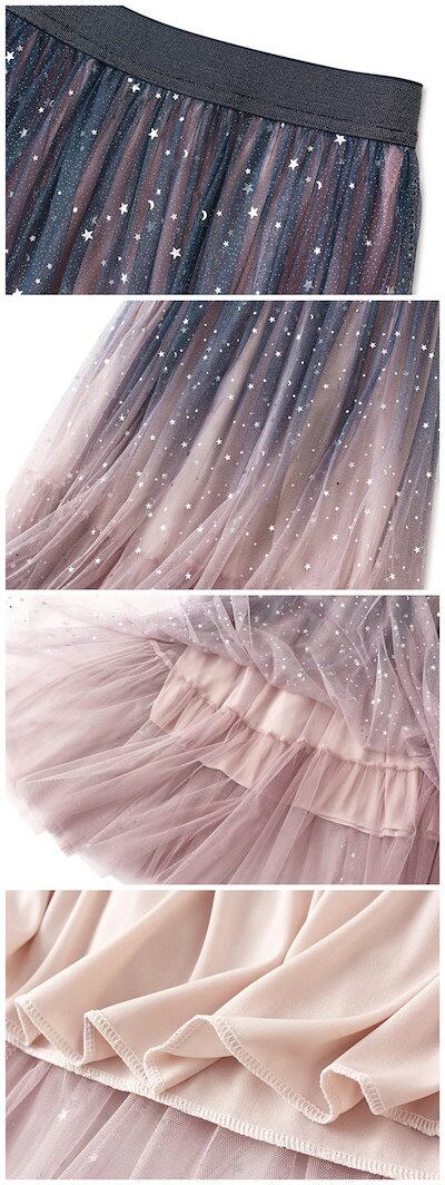スカート チュールスカート 星チュールロングスカート レディース フレア ロングスカート ボトムス ミモレ丈 グラデーションスカート ウエストゴム ボトムス ロング丈 ロングスカート 秋 冬 チュール