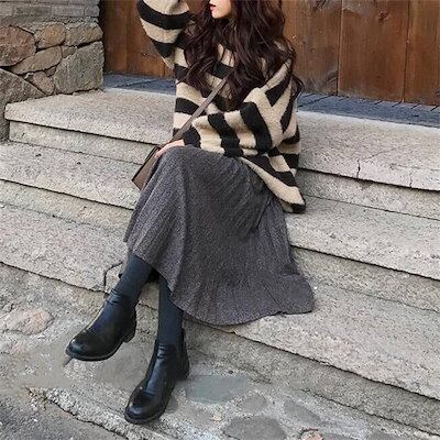 プリーツスカート スカート ロング 無地 Aライン レディース ボトムス 厚手 ミモレ丈スカート ロング丈 ロングスカート 秋冬 ウエストゴム aライン 大きいサイズ 体型カバー 着痩せ 通勤 OL