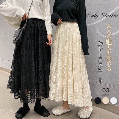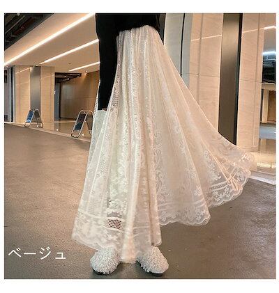 総レース スカート チュールスカート レース スカート レディース スカート ボトムス ロング丈 ロング スカート マキシ丈 Aライン aライン 春 秋 ウエストゴム チュール レーススカート ふんわ