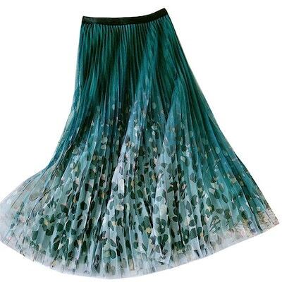 プリーツスカート ロング ロングスカート プリーツ フレアスカート ボトムス グラデーションスカート ヒョウ柄 スカート レディース フレア ロング丈 ミモレ丈 春夏秋 春 夏 秋 ウエストゴム シン
