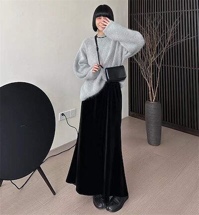 マーメードスカート レディース Aラインスカート ボトムス 裏起毛 無地 ロング丈 マキシ丈 ベロア 体型カバー マーメイド フレアスカート ゆったり 暖かい ウエストゴム 楽ちん シンプル
