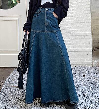 デニム スカート Aラインスカート レディース きれいめ 大人 ボトムス フレアスカート マキシ丈スカート ロングスカート 楽ちん ゆったり カジュアル お洒落 体型カバー ウエストゴム 女子会