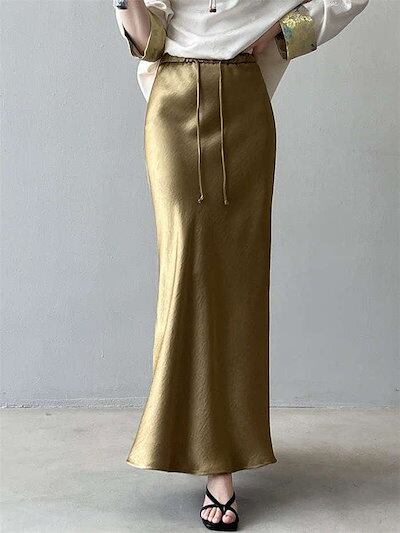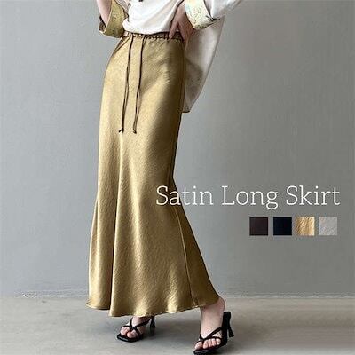 スカート サテン ロング レディース ボトムス マーメイドスカート フレアスカート マーメイド ひざ下 ロングスカート ロング丈 ミモレ丈 きれいめ ハイウェスト インナー 光沢感 上品 トレンド カ