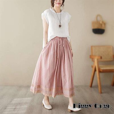 スカート レディース 綿麻 ボトムス コットンリネン 春 夏 秋 無地 裏地付き ウエストゴム Aライン ロング丈 ペチコート フレア 体型カバー 綿麻スカートスカート レディース 綿麻 ボトムス コ