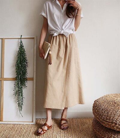 ガウチョパンツ レディース ラップスカート風 ボトムス キュロットパンツ 春 夏 春夏 ワイドパンツ 無地 スカーチョ ポケット 巻きスカート ラップパンツ 綿麻 スカート ウエストゴム 9分