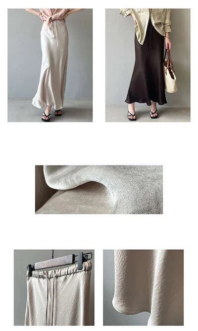 トレンド 上品 レディース ボトムス ハイウェスト フレアスカート ミモレ丈 ロングスカート マーメイドスカート きれいめ カ ひざ下 ロング マーメイド ロング丈 サテン インナー スカート 光沢感