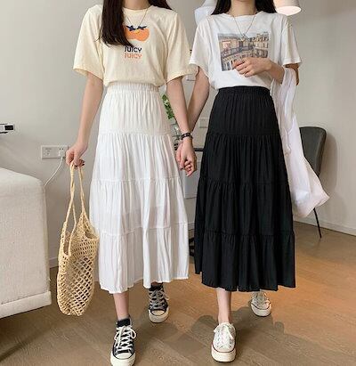 ギャザースカート シフォンスカート フリル ロングスカート 切り替え フレア aライン ウエストゴム ロング丈 ミディアム ふんわり レディース 無地