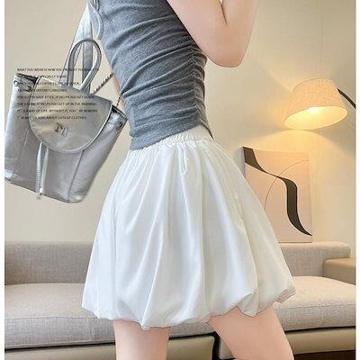 スカート ミニスカート レディース バルーンスカート 夏 レディース ウエストゴム バルーンミニスカート 韓国風 ホワイト ブラック