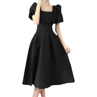 愛されドッキングワンピースフランス初恋白ビッグスイングロングスカートレディーススクエアカラーウエスト着痩せワンピース