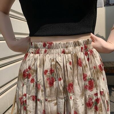 スカート ロングスカート フレアスカート ロング丈 レディース ボトムス 花柄フレアスカート ミモレ丈 フレア Aライン ハイウエスト ウエストゴム 透け感 きれいめ 大人 上品 おしゃれ 大人可愛い