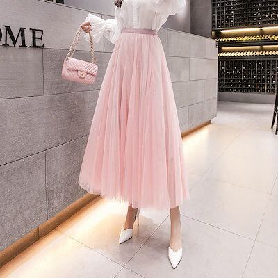 プリーツスカート レディース ロングスカート チュール ロング丈 ミモレ丈 ウエストゴム レース 伸縮性 きれいめ 大人 おしゃれ クール エレガント 存在感 春 夏 デート お出かけ 休日 旅行