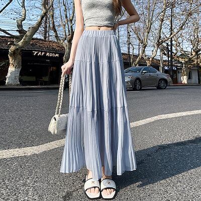 スカート ロング レディース ティアードスカート ロング丈 プリーツ ハイウエスト フレア フレアスカート Aライン ウエストゴム 薄手 きれいめ 大人 おしゃれ 大人可愛い エレガント 春 夏