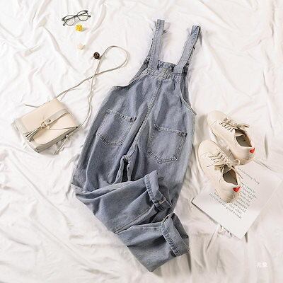 コーデ完成!サロペット 時短コーデ イチオシオールインワン 韓国ファッション デニムバックパックズボン女性 バージョンの緩い学生春シーズン薄いバックパックズボン