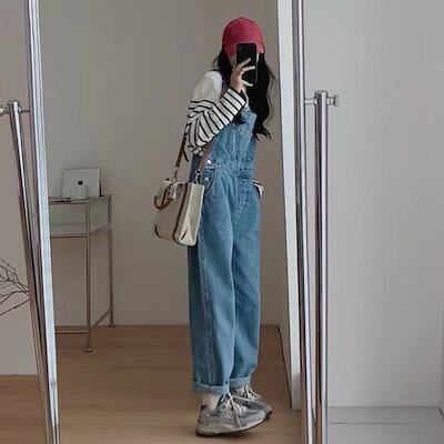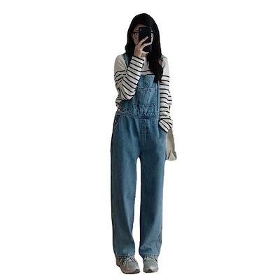 コーデ完成!サロペット 時短コーデ イチオシオールインワン 韓国ファッション デニムパンツ女性ハイウエスト薄い春2024新しいカジュアルファッションストレートパンツ