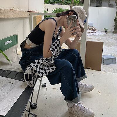 コーデ完成!サロペット 時短コーデ イチオシオールインワン 韓国ファッション 2024春新作 女性ハイウエストイレギュラーゆったりワイドデニムバックストラップパンツ
