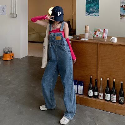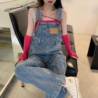 コーデ完成!サロペット 時短コーデ イチオシオールインワン 韓国ファッション レディース ベルト付きジーンズ レトロ レジャー スリム ゆったり ワイドパンツ 引きずりズボン 長ズボン