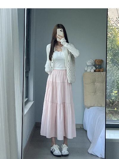 プリーツスカート 脚魅せミニスカート フレアスカート 2024 夏 新作 スカート ハイウエスト ミディアム やさしい風 ポンポンスカート ケーキのスカート 百掛け 韓国ファッション