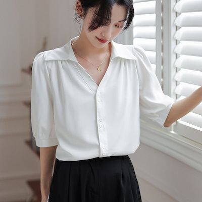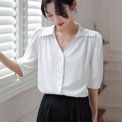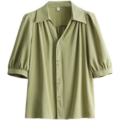 今っぽシアーシャツ 夏先取りブラウス シフォン半袖シャツ レディース 夏 Vネックブラウス キャリア ゆったり シンプルデザイン ブラウス 韓国ファッション