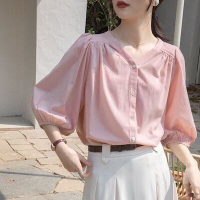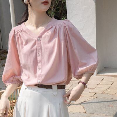 今っぽシアーシャツ 夏先取りブラウス 半袖シャツシャツレジャーブラウスの気質シフォンシャツメス2024夏の新しい韓国語バージョン 韓国ファッション