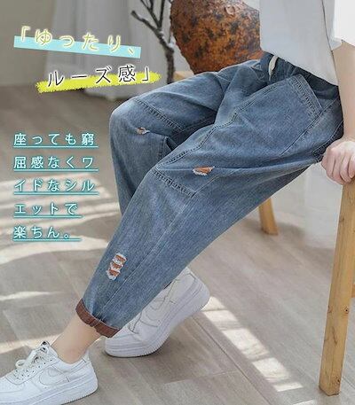 デニムパンツ 春 レディース テーパードパンツ ワイド ボトムス チノパン ジーパン ロールアップ 森ガール 春 無地 ズボン ウエストゴム 大きいサイズ 柔らかい ゆったり 体型カバー 薄手 オシャ
